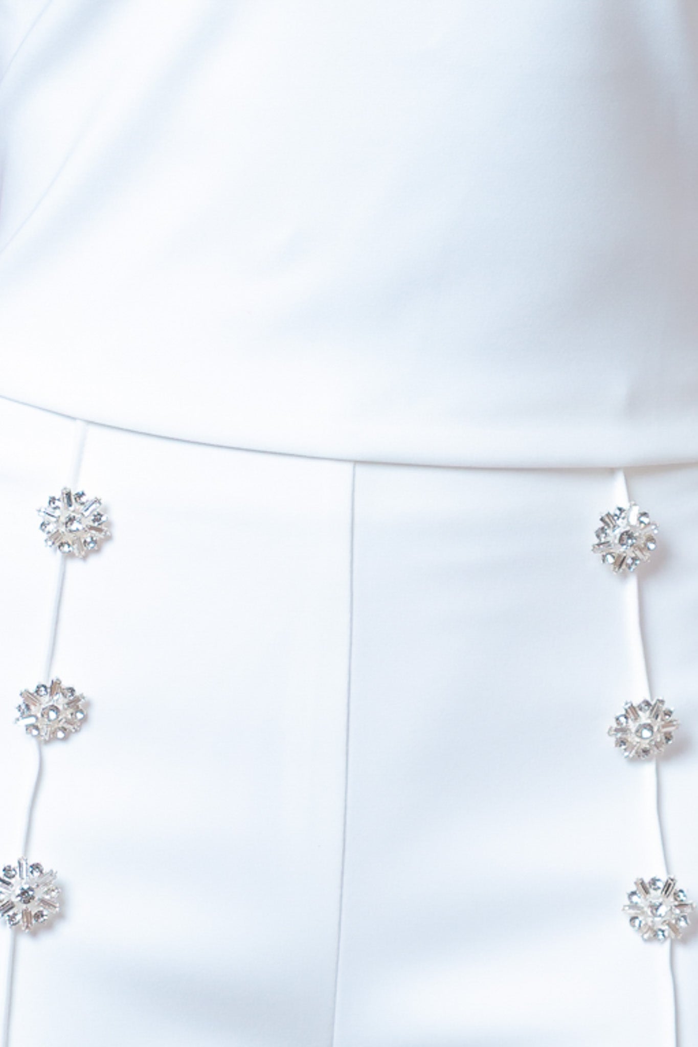 CONJUNTO BLUSA CUELLO CUADRADO CON PEDRERĂA & PANTALĂN DETALLE DE COSTURA, BOTONES LATERALES PLATA.